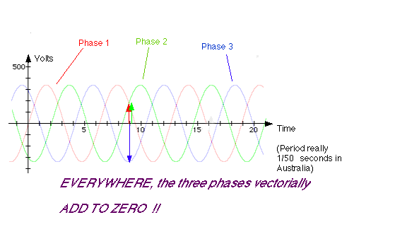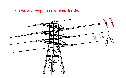 When the magnet spins in a generator, three outputs of electricity are created, not one. Each is coming to a maximum at a different time to the rest, "they are out of phase to each other by 1200" . Each of the three lines carries one of these three outputs. But where is the return line for each to the generator? This is where the trick comes in. Three identical waves out of phase by 1200 add to zero!!!!! So the engineers tie the other ends together and plant the, now single end, deep in the ground. If a slight residual remains, it seeps back through the ground.
