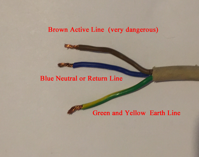 An additional line is used in houses, the earthline, a green coated wire (with a yellow stripe), which is supposed to be a safety wire.