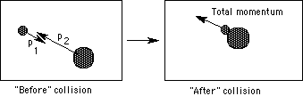 Something happens in the system, the two objects combine for some reason ( which we are not particularly interested in at the moment ).