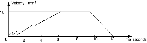 3. You are learning to drive a car. Sensibly you are out in a paddock in your sister's heap of a Corolla with a bunch of "friends". Interpret your vel-time graph below, calculating your accelerations and the maximum distance you travel. ( In which section were you "kangaroo-hopping"and where did you change to second? ) ( 77.5 m )
