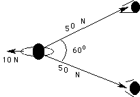 Soln; First we must find the sum of the two forces in the ropes. We do this by vector geometry.