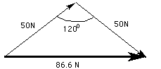 The total force by the ropes is 86.6 N forward but the friction will oppose this so