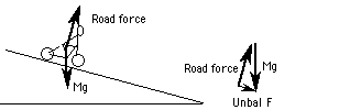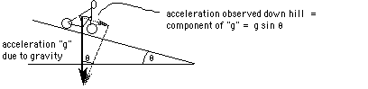 If we work through this carefully, the resulting unbalanced force turns out to provide an acceleration which is equal to the component of "g" down the hill. We are assuming no friction from the ground or air resistance.