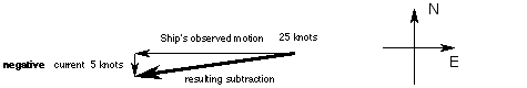 Eg; Subtract the effect of a 5 knot current which is going due North from the observed motion of a ship going at 25 knots West.