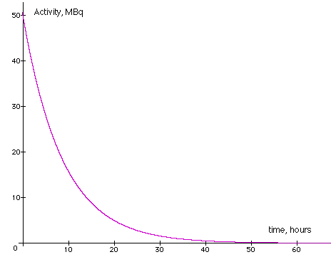 4. The graph below represents the decay of Tc-99 with an initial activity of 50MBq and a half-life of 6.0 hours.
