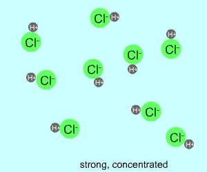 Any electrolyte (acid, base, salt) has a characteristic degree of dissociation (breaking apart). With acids in particular, this is a central concept as the degree of dissociation has a large effect on the pH of a solution. The pH of a solution reflects the concentration of hydrogen ions (H+). One way to get lots of these in a solution is to have lots of acid molecules in the solution. The other way is to have molecules that provide lots of hydrogen ions.