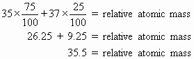 Calculate the relative atomic mass of chlorine using the following information: Chlorine has two isotopes, chlorine−35 and chlorine−37. The percentage of chlorine−35 is 75%, that of chlorine−37 is 25%.