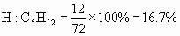 Example: What percent, by mass, of pentane (C5H12) is hydrogen?
