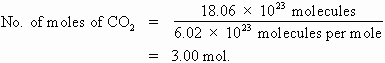 How many moles of carbon dioxide gas will you have if you are told that you have 18.06 x 1023 molecules of the gas in your breath?