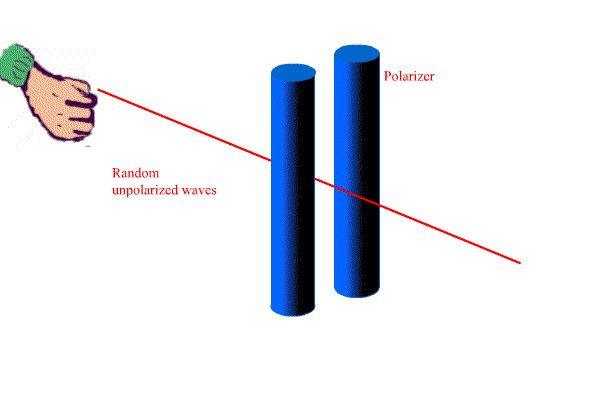 Unpolarized waves arrive with RANDOM directions of disturbance. Polarized waves can be formed from unpolarized waves by passing them through some polarizing process. A train of unpolarized waves in a rope can be polarized by passing them through a narrow physical gap.