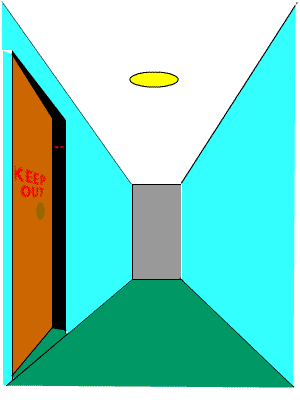 Imagine you are terrified by your big sister/brother - pretty easy unless you are the eldest.( If you are the eldest - try your little sibling .) You are to go down the corridor past their bedroom door which is slightly ajar on your way bed. IT IS SPOOKY. The gap is BLACK, Fearsome Creatures live in there!!