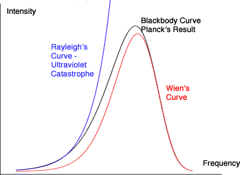 German Physicist, Max Planck, wrestled with the problem and finally managed to come up with the correct curve by modifying Wien's graphical fit. He realised that inserting "-1" in the denominator gave the right equation. He had no idea at first why it worked.