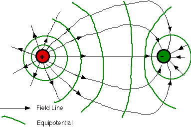 Equipotentials are lines of equal "voltage" - equal electrostatic pot energy per unit charge.