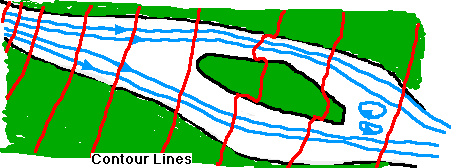 A contour map - we can think of rivers running at right angles to the contours - but rivers have speed and direction - they are vectors! What is more, they are always at right angles to contours! Even more startling - the speed of the river will depend on how close the contours are together!