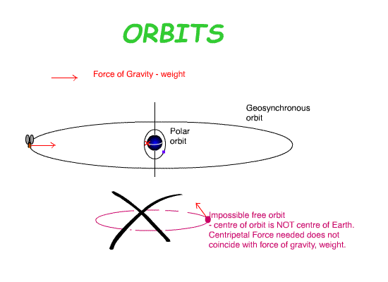 Suppose someone is stupid enough to try to place a satellite with 24 hour period over Tasmania at 420 South. Then its orbit would be an impossibility as the centre of the necessary circle does NOT coincide with plane of the only force available to create the orbit, gravity.