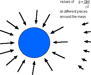 We introduce the idea of "something" - a field - at a place "caused by" a mass - or "belonging to" a mass.