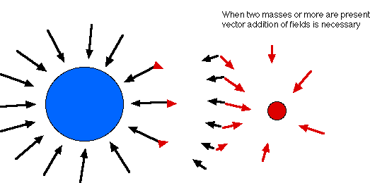 When many masses are present, each contributes its own field to each place in space.