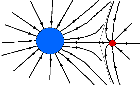 for a small mass M1 near a large mass M2,