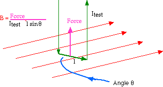 For convenience, we select a small straight piece of wire of known length and current. I shall call it Itest because it must be small ( so small you can scarcely see it - get it? ). Arrange the wire so you get the LARGEST force on it. This is different from gravity and electrostatics where the orientation of the test object is irrelevant.