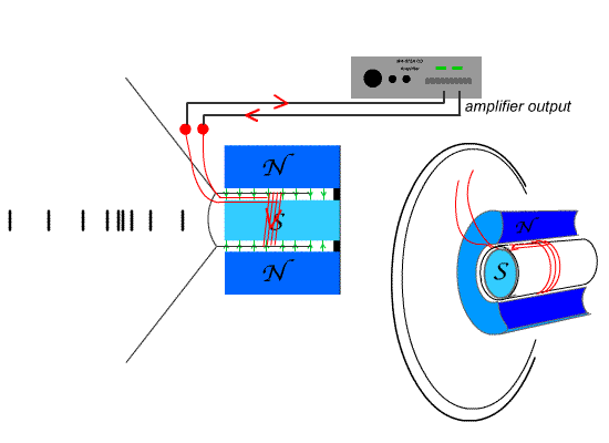 The standard loudspeaker is also a magnetic motor but it is not a rotating device. The moving component is a cylinder ( with the loudspeaker cone attached ) inserted in a very powerful radial magnetic field. This field is created by a central pole surrounded by the opposite pole. The cylinder fits in the slot between the poles. Wires are wrapped around the cylinder, so an alternating current from an amplifier into the wires is then subjected to powerful magnetic forces ( F = IlB and the RHS rule for direction). These forces are along the axis of the cylinder making it move back and forth in proportion to the current.
