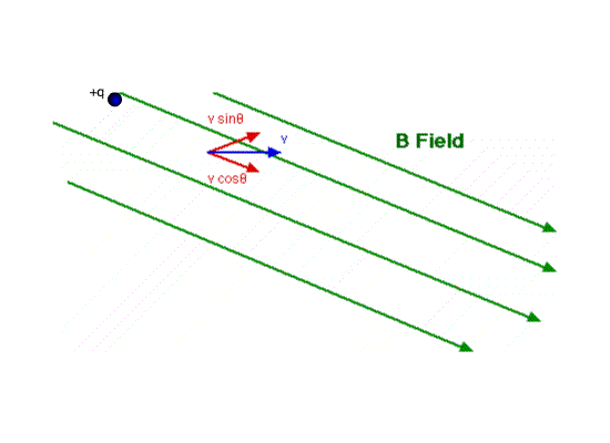 This rule guarantees F is perpendicular to vsinθ so the charge will move in a HELIX - advancing at vcosθ while circling at vsinθ .