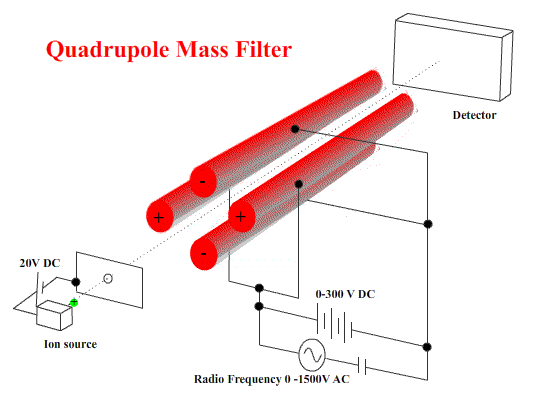 Quadrupole machines use electrostatics only. A combination of DC and AC fields on four stainless steel bars to cause ions to start wobbling - to move in irregular paths.
