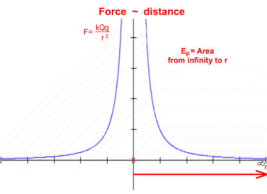 Ep is area under the appropriate "Force ~ distance" graph. We have to find the area from infinity INWARDS to the place of interest as otherwise we get ridiculous results ( due to the vertical asymptote at r = 0 for the technically minded ).