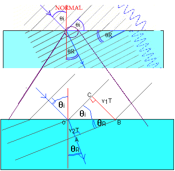 It follows that sinθi / sinθR = CB / OA = v1T / v2T = v1 / v2 = n med2 rel med1