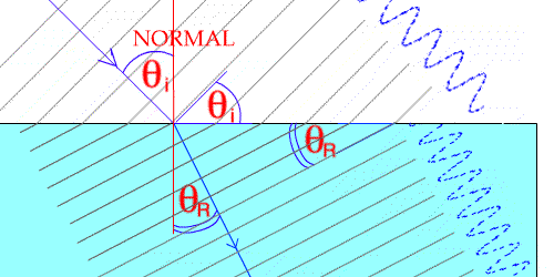 We can calculate the way in which they refract by studying the distance the waves move in one period,T, of their motion.